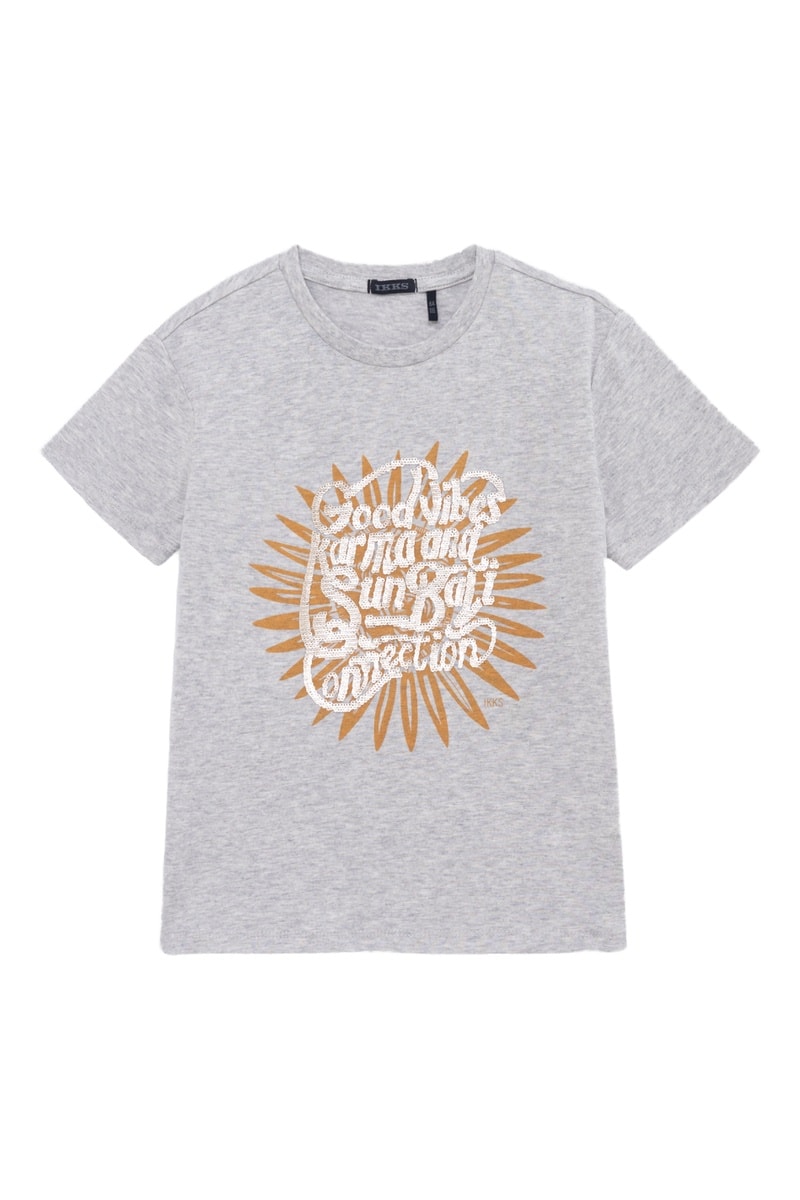 T-shirt em algodão biológico - Cinzento-claro mesclado - IKKS