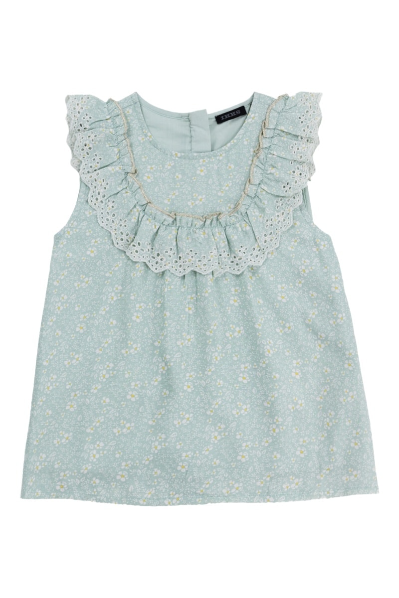 Folhos com bordado inglês nos ombros.