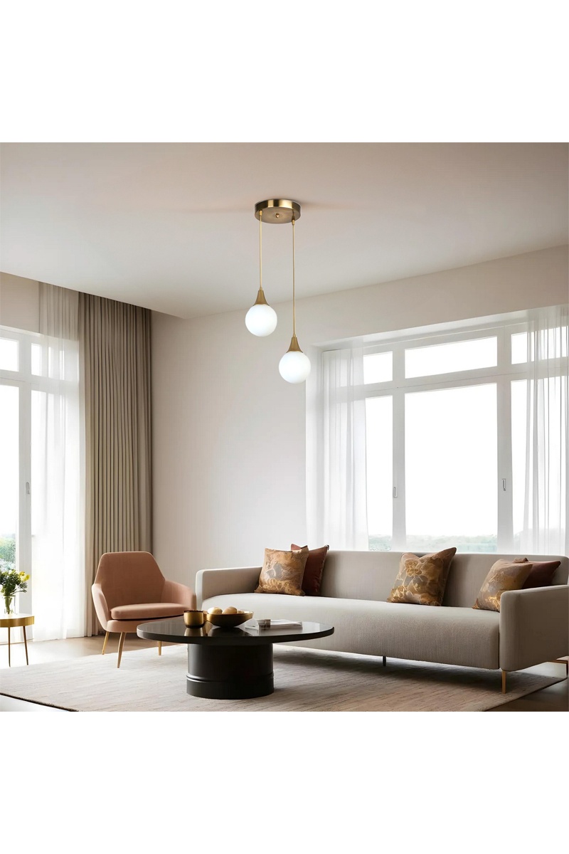 Candeeiro suspenso Afra 2 - Dourado e branco - 2 x 60 W