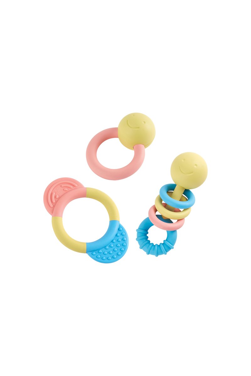 Coffret de argolas e chocalhos de dentição à base de arroz - A partir do nascimento