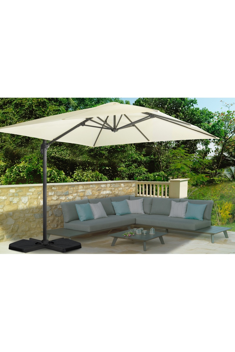 Guarda-sol quadrado 360º descentrado com capa e pé - 9 m²