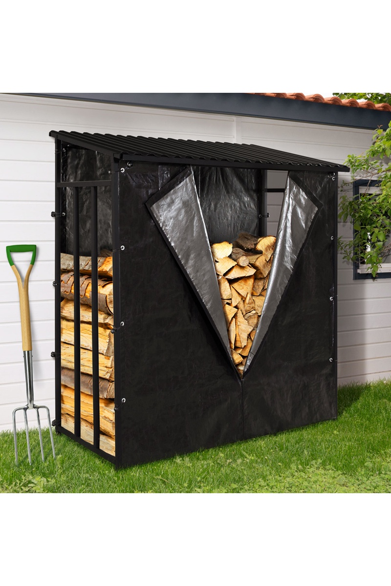 Abrigo para lenha com tampa de proteção com fecho zip - 190 x 70 x 185 cm