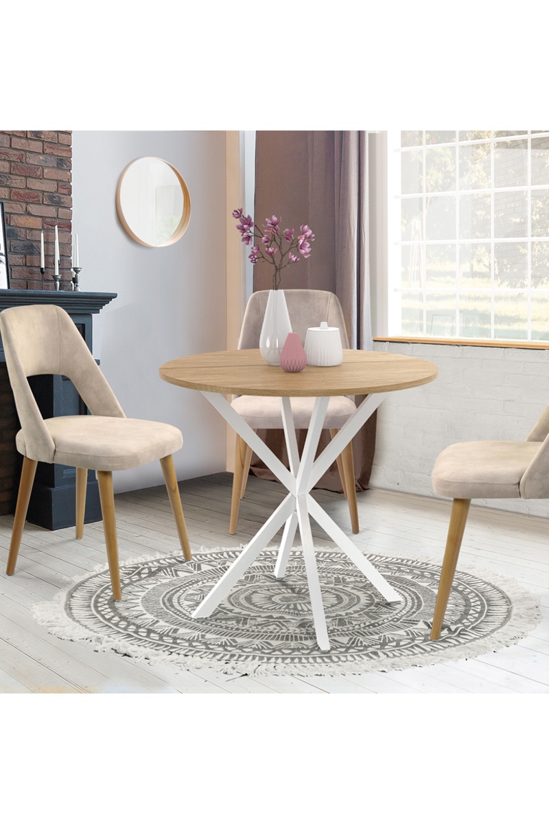 Mesa Soline - Imitação madeira e branco