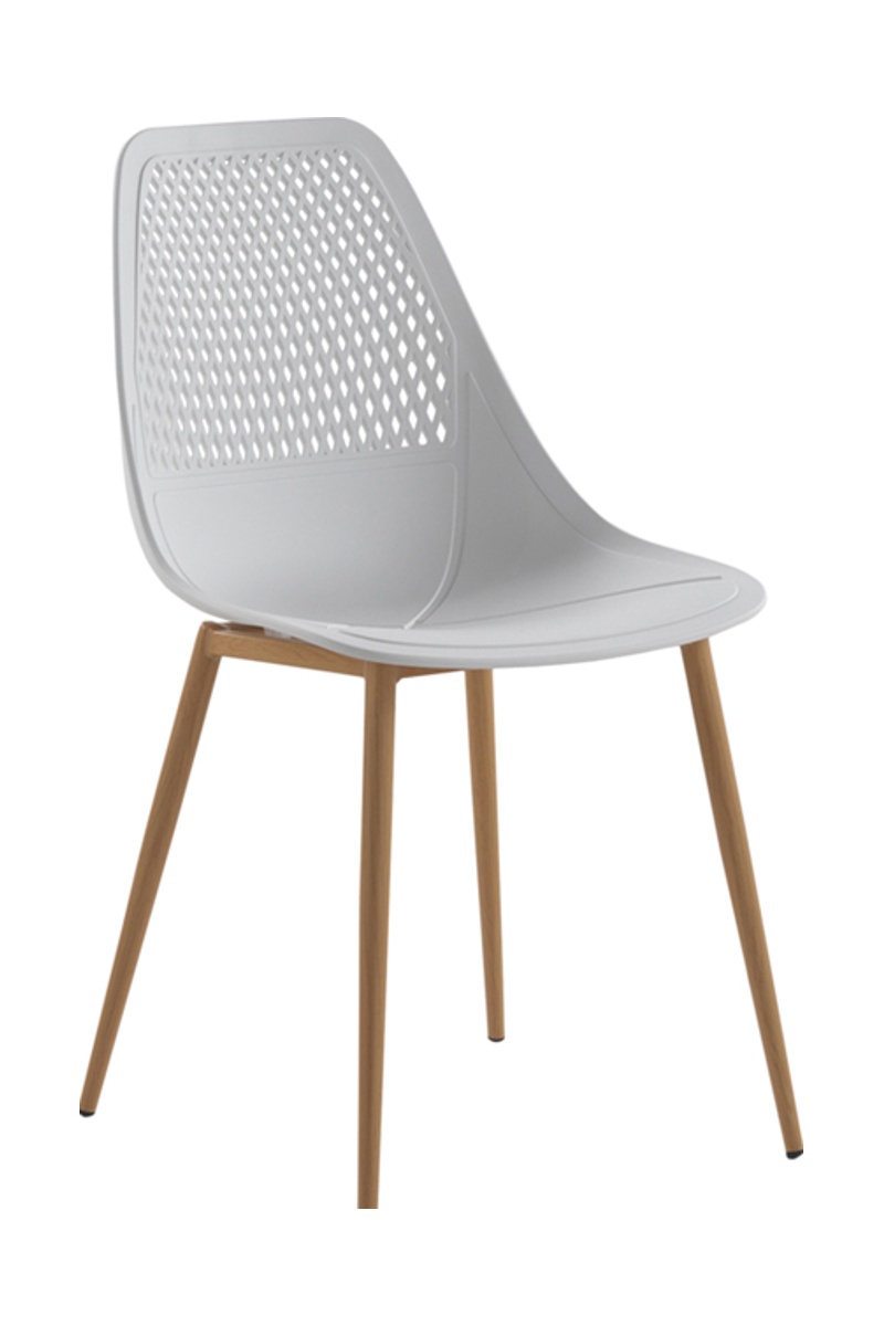 Conjunto de 4 cadeiras. Pés de metal revestidos de tinta efeito madeira.