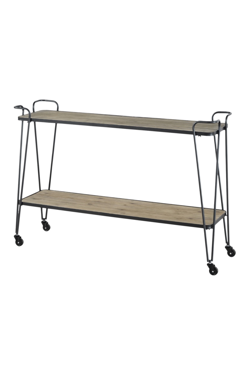 Base metálica de cor escura.Material: Madeira de pinheiro e ferro