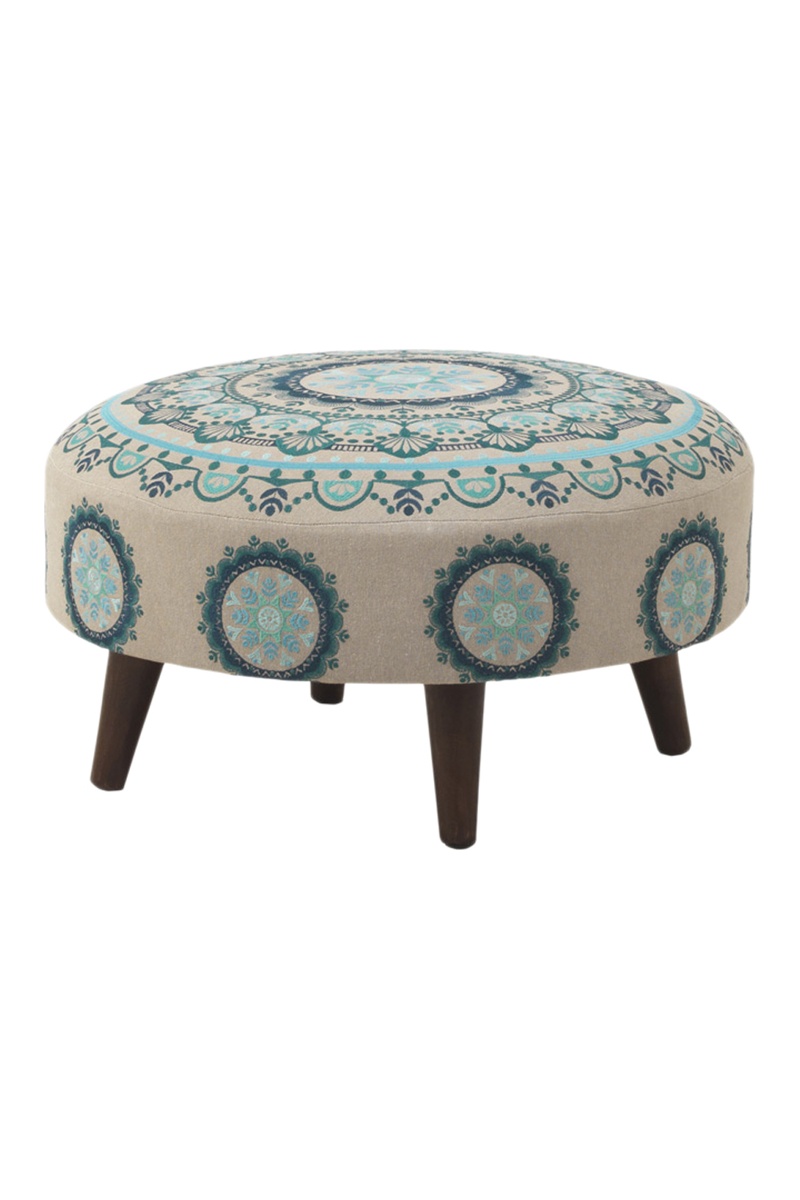 Pufe. Pés de madeira de pinho castanho.