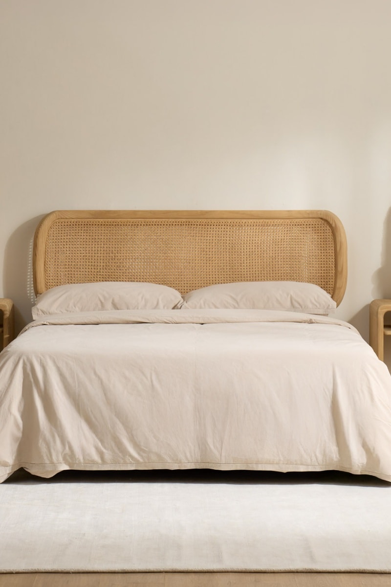 Cabeceira de cama em madeira de sungkai e rotim - 160 x 19 x 55 cm