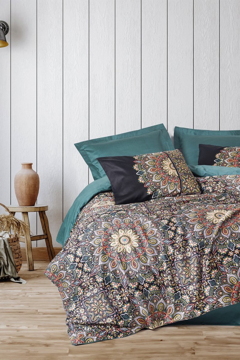 Conjunto de edredão em algodão Ornate 48 fios/cm² em cetim de algodão - Verde e branco