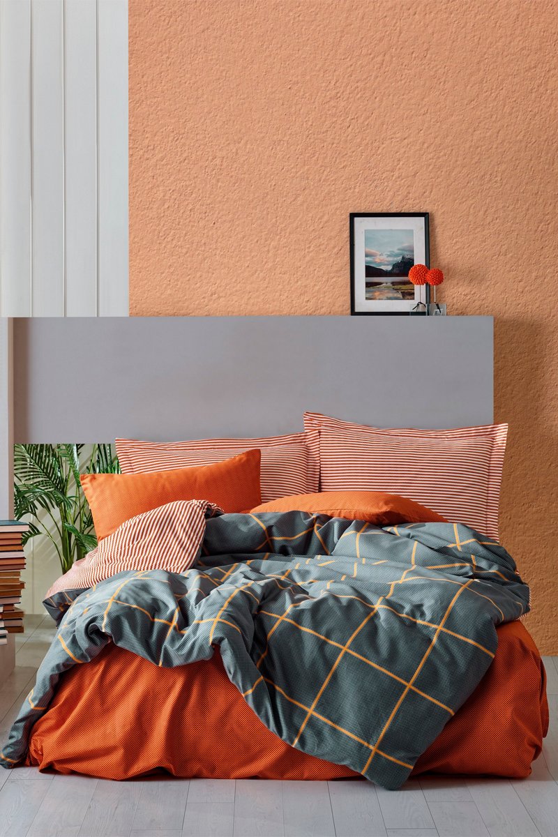 Conjunto de edredão em algodão 57 fios/cm² Stark - Laranja e cinzento