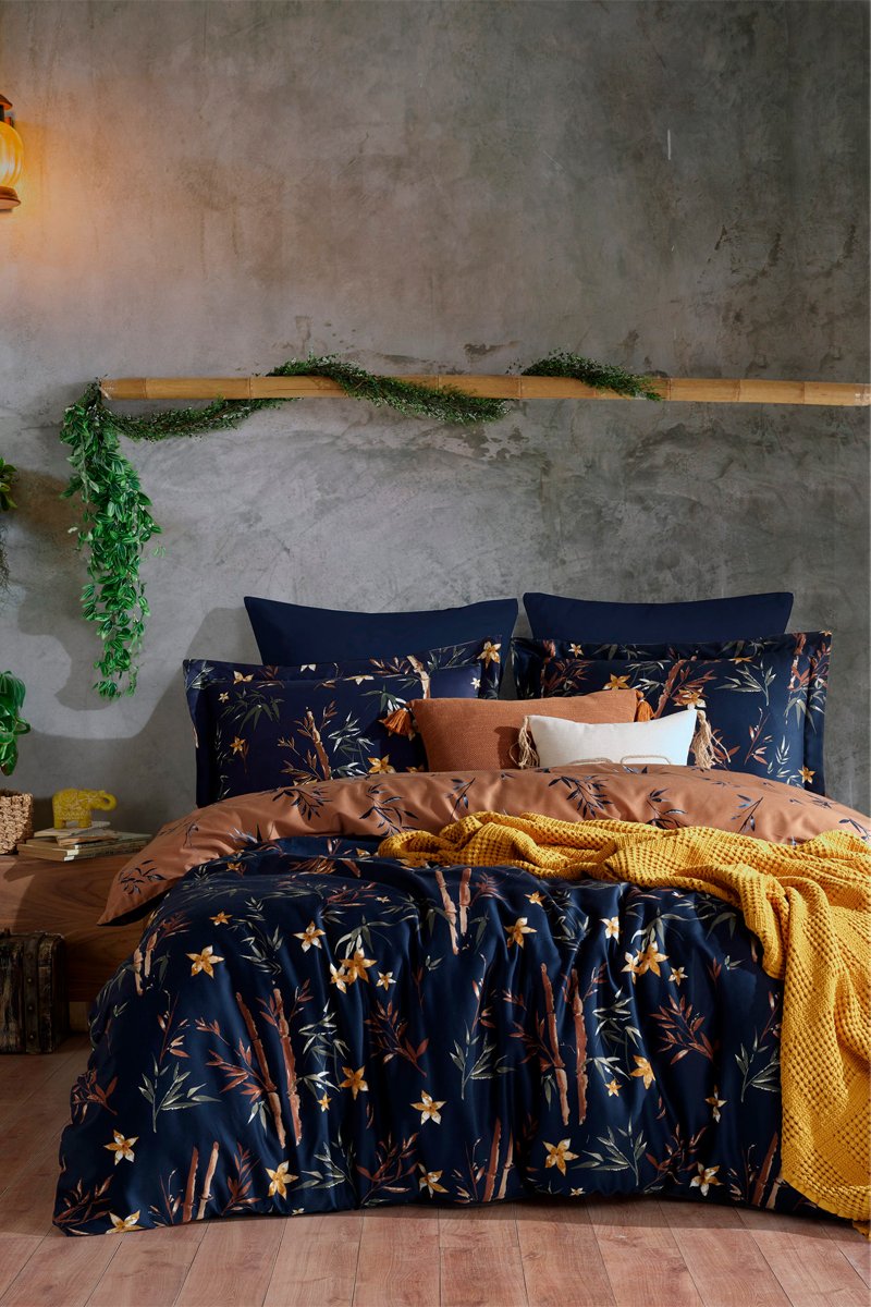 Conjunto de edredão em cetim de algodão 82 fios/cm² Bamboo - Azul-marinho