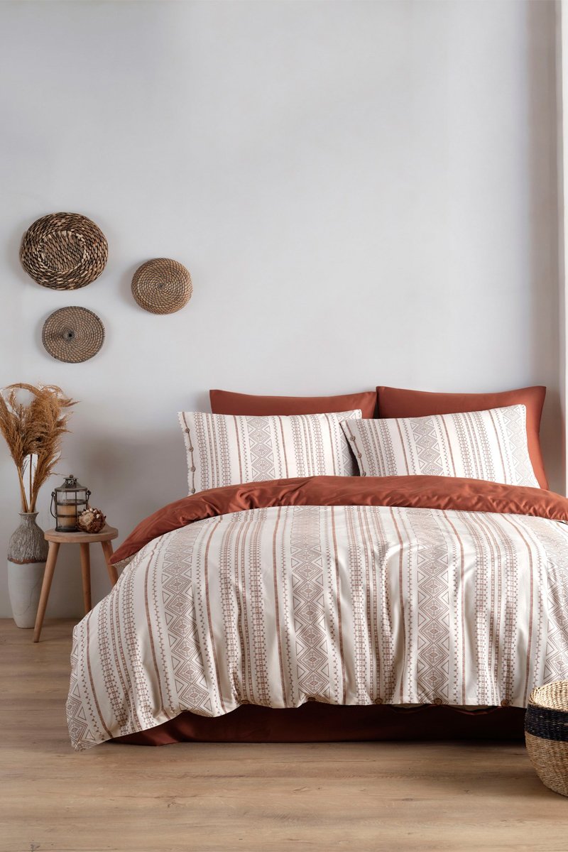 Conjunto de edredão em cetim de algodão 82 fios/cm² Coastal Trio - Terracota e branco