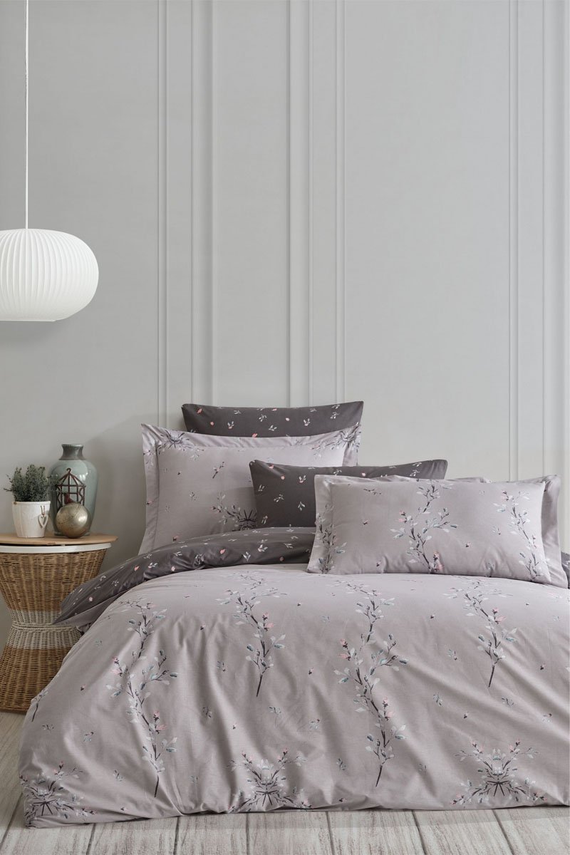 Conjunto de edredão em algodão reforçado 145 fios/cm² Mayda - Rosa e cinzento