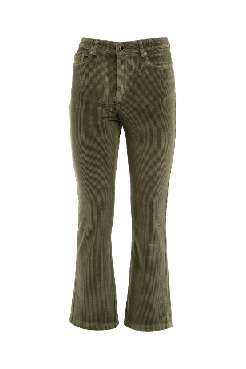 Calças wide legs em veludo - Verde-azeitona - Verde