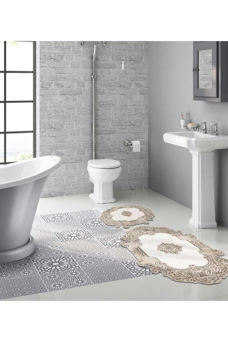 2 tapetes de banho - Creme - 50 x 60 cm, 60 x 100 cm
