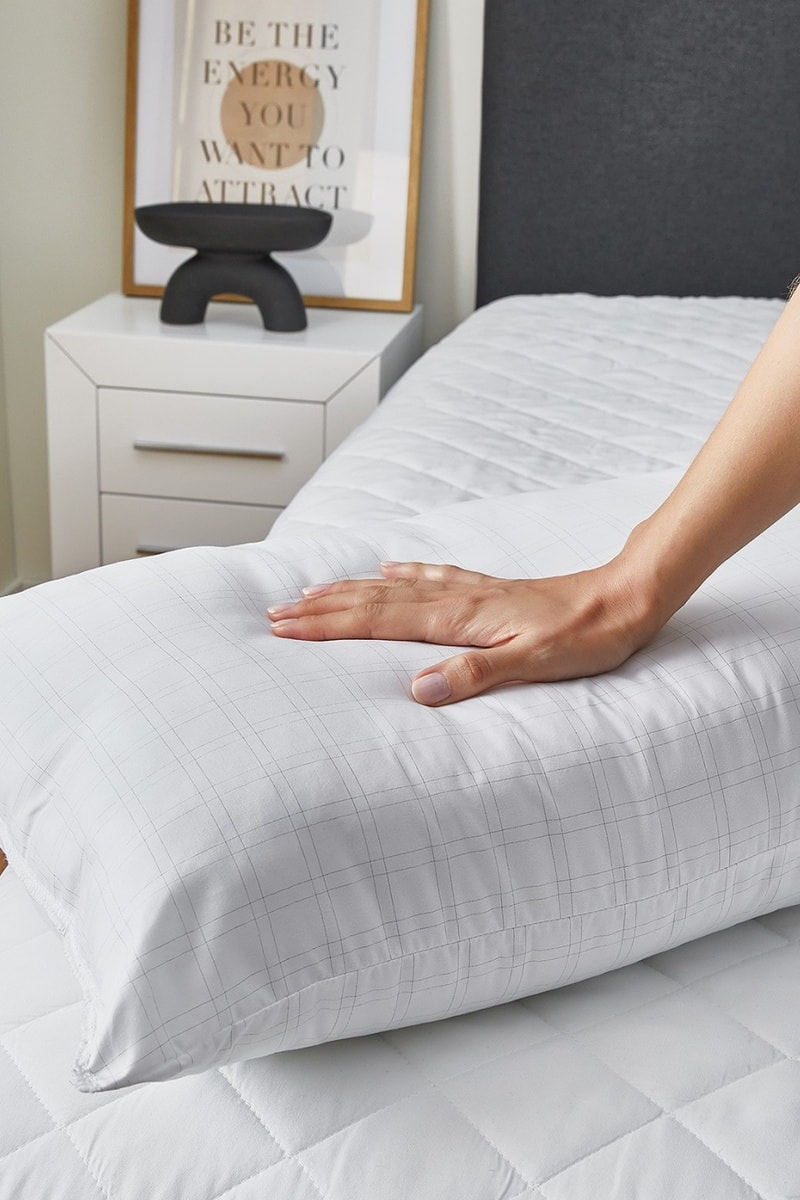 Estrutura alveolar do enchimento em microfibra permitindo que o ar circule dentro da almofada, evitando a acumulação de calor.