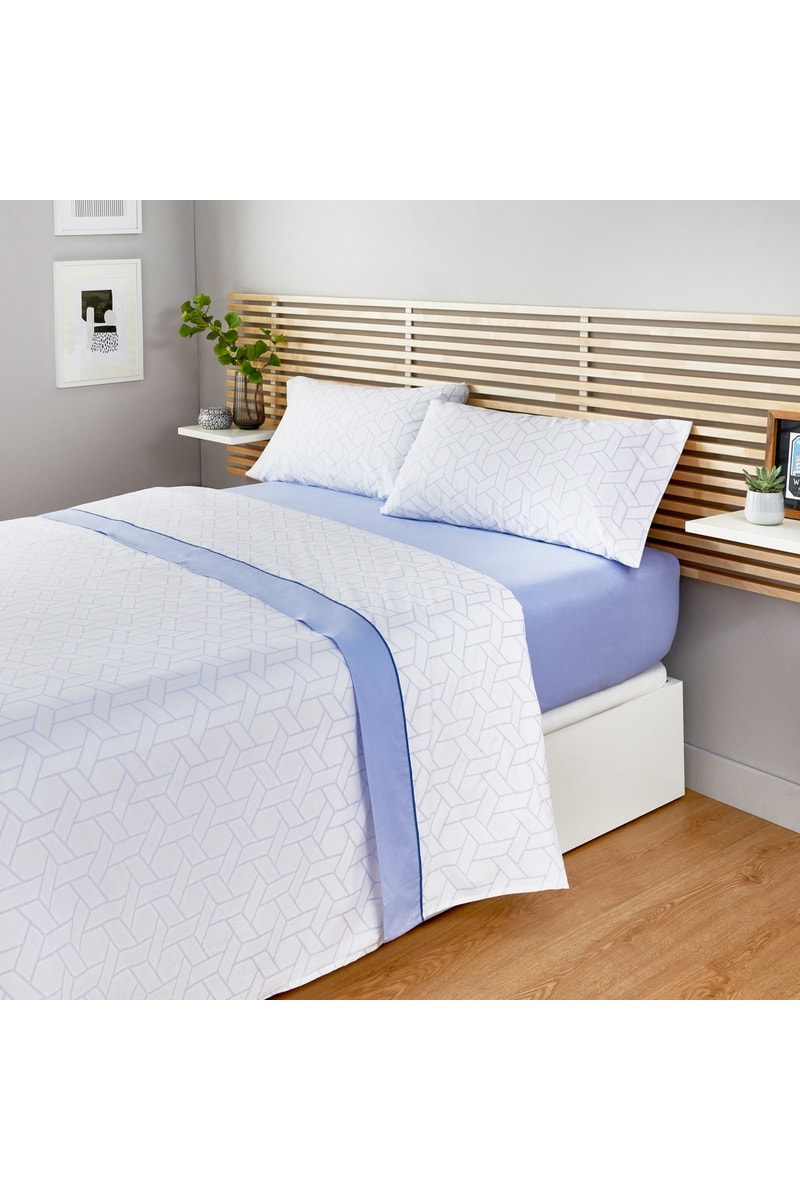 Conjunto de lençóis em algodão 59 fios/cm² - Branco e azul
