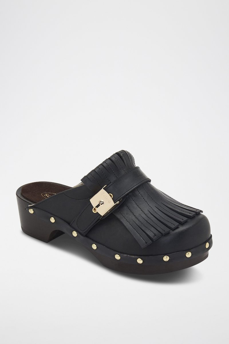 Franjas e tira de fivela à frente.