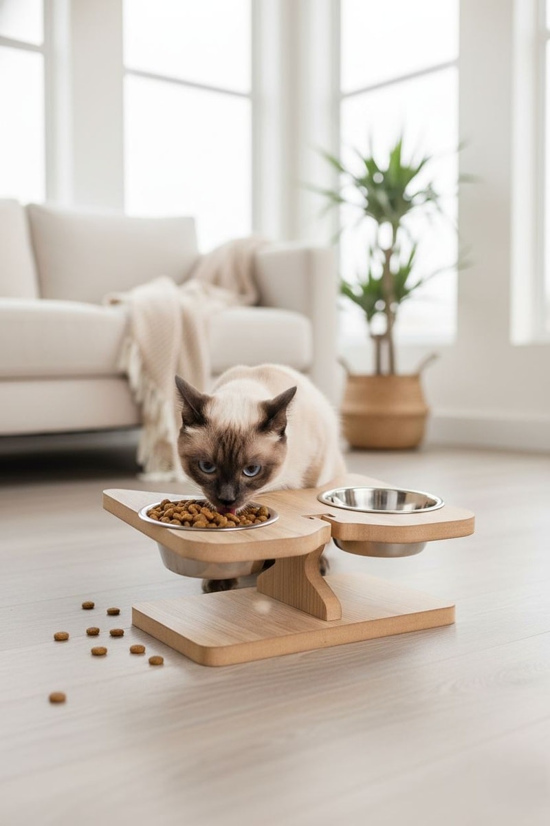 Suporte para comedouro em forma de gato.