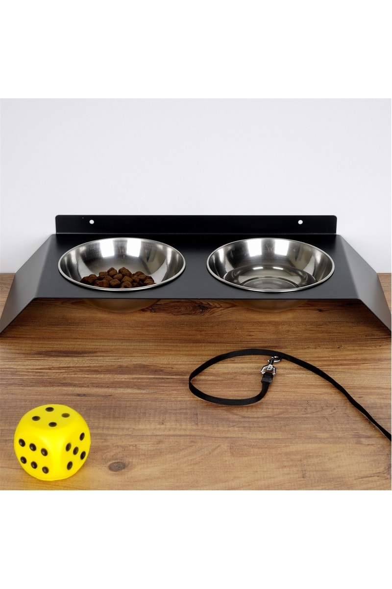 2 comedouros em aço inoxidável.