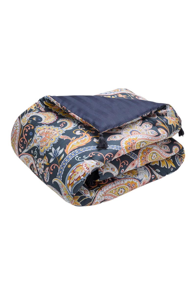Edredão em cetim de algodão 80 fios/cm² Paisley - Azul escuro e amarelo