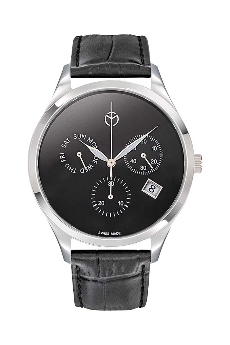 Relógio de quartzo em couro - Cronógrafo - Preto e prateado