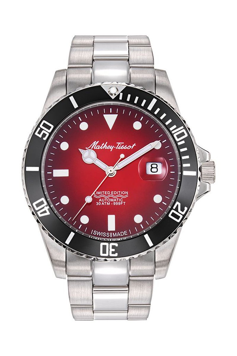 Relógio automático em aço Mathy vintage jumbo - Prateado e vermelho