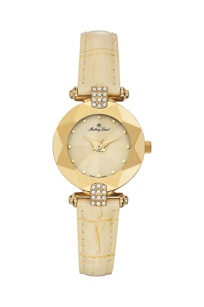 Relógio de quartzo em couro com cristais Swarovski Pyramide - Dourado