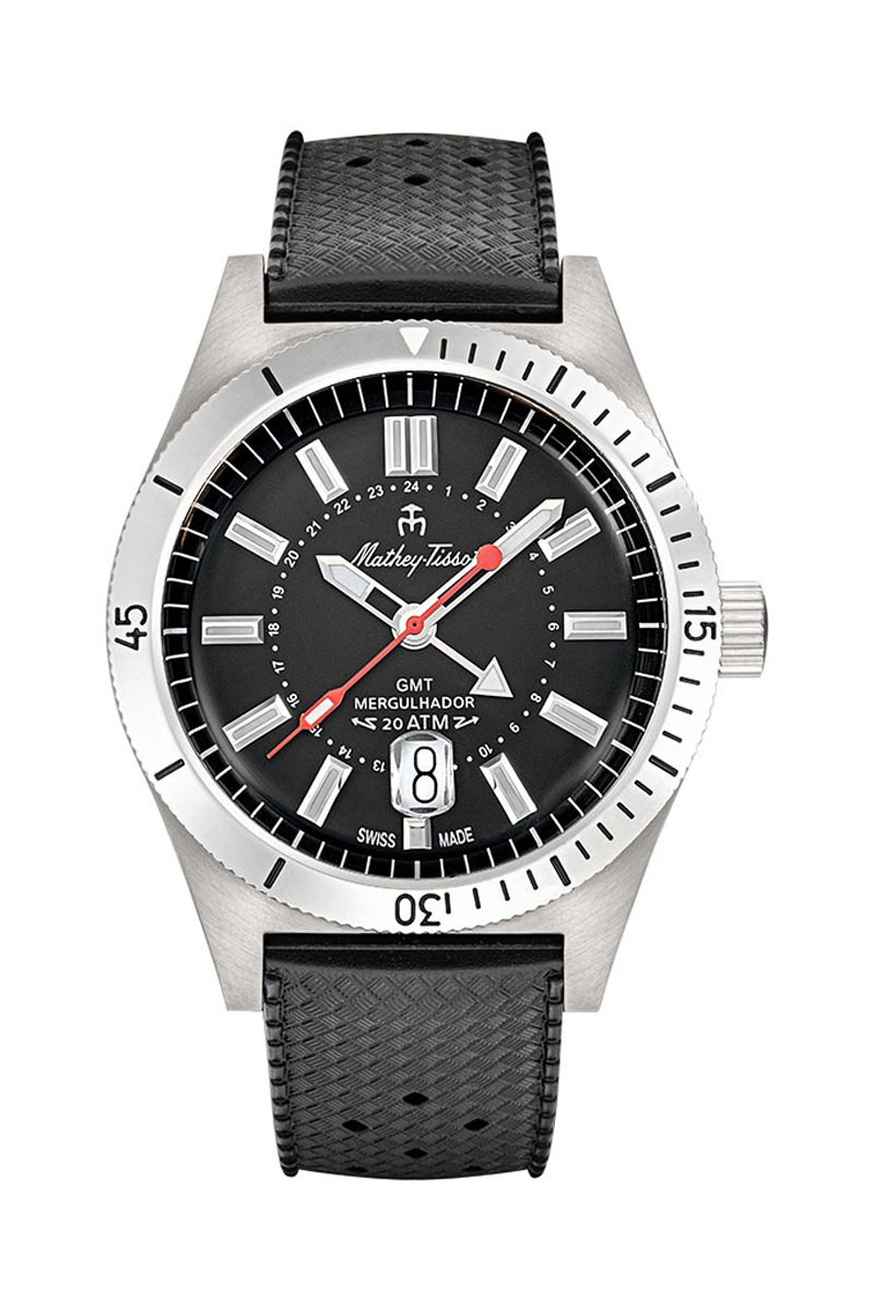 Relógio de quartzo em couro Mergulhador - GMT - Preto e prateado