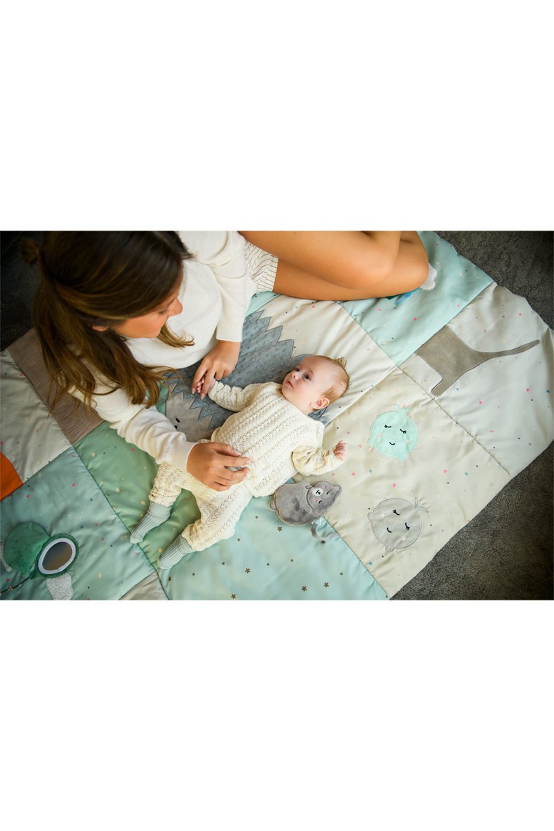 Além do seu papel educativo graças aos seus brinquedos sensoriais, pode servir como tapete de piquenique ou de praia, mas também de cobertor.