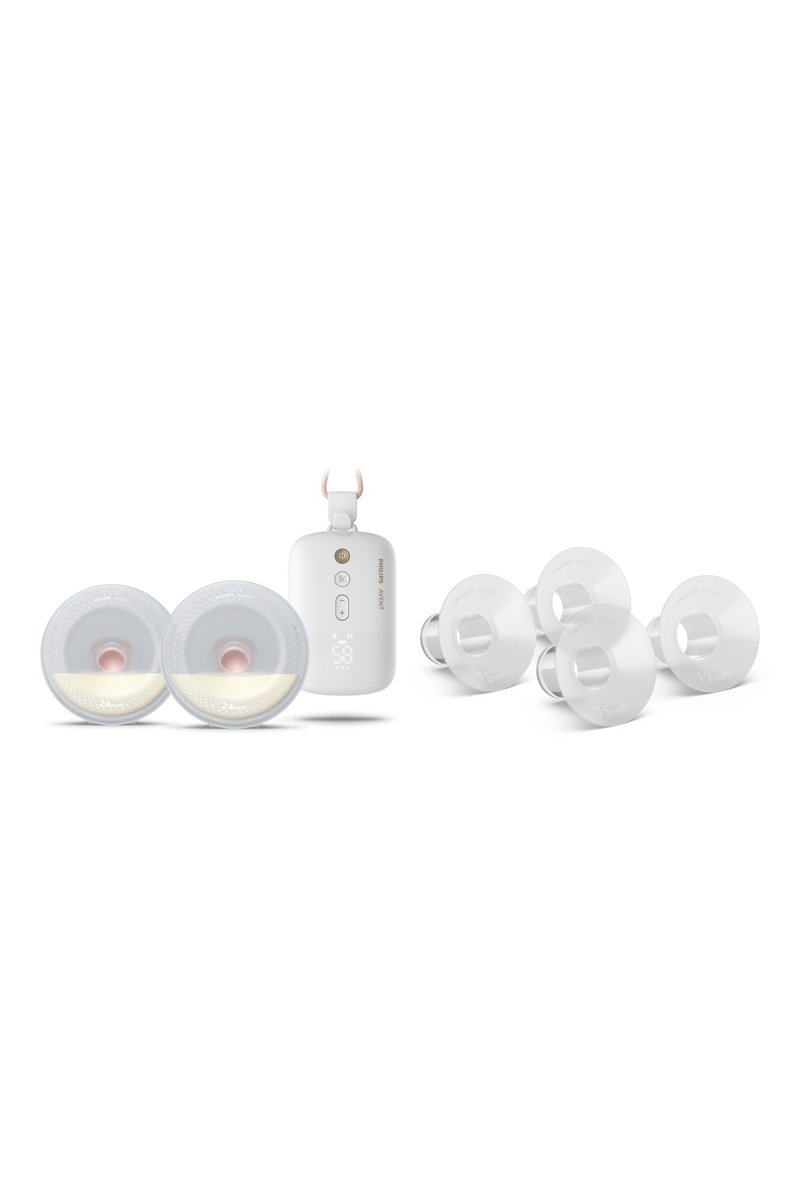 Estas inserções de 15 mm e 17 mm para mamilos mais pequenos oferecem uma fixação segura e confortável; para utilizar com cones de extração de 21 mm e frascos de recolha mãos-livres Philips Avent.
