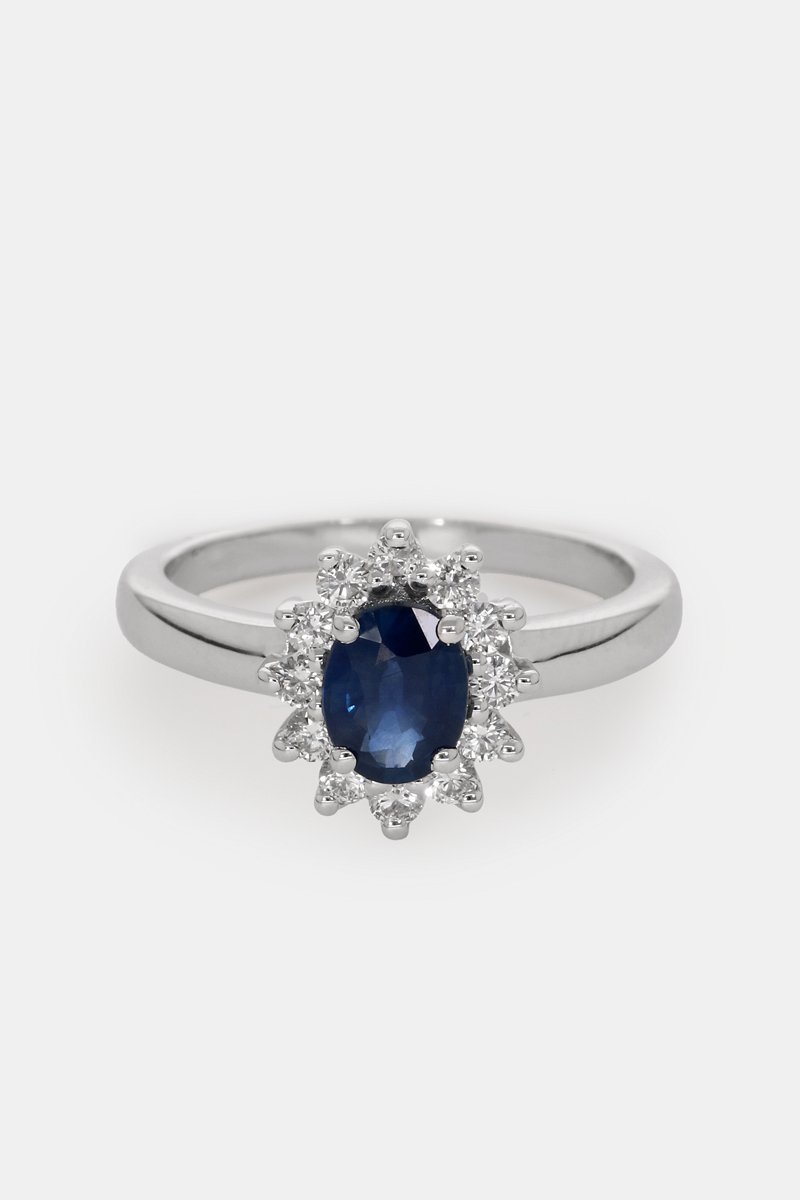 Anel - Ouro branco 18 quilates, safira e diamantes
