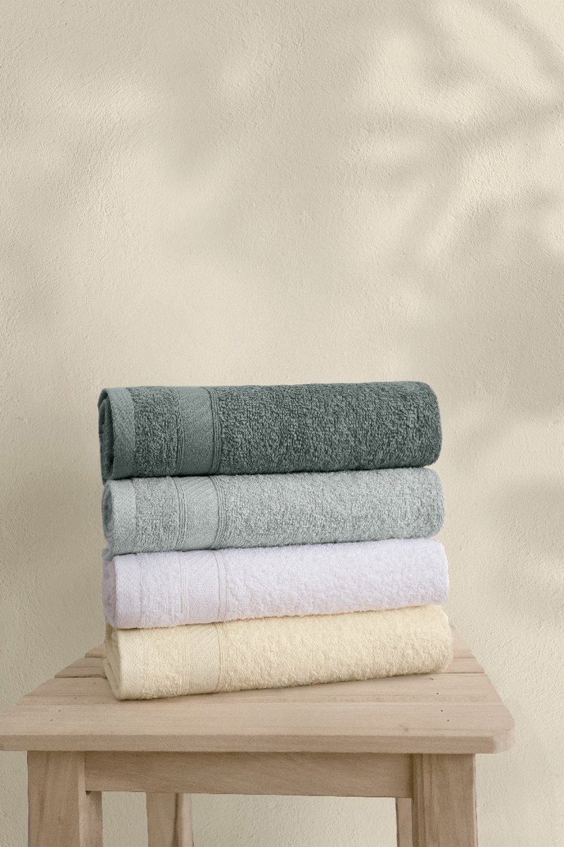 4 toalhas - Cinzento e amarelo - 50 x 90 cm