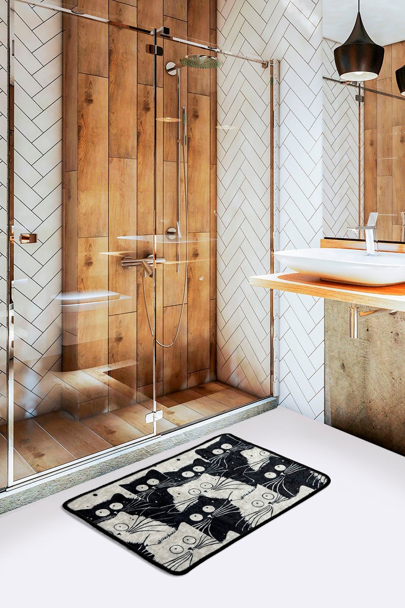 Tapete de banho White Cats DJT - Branco e preto - 40 x 60 cm