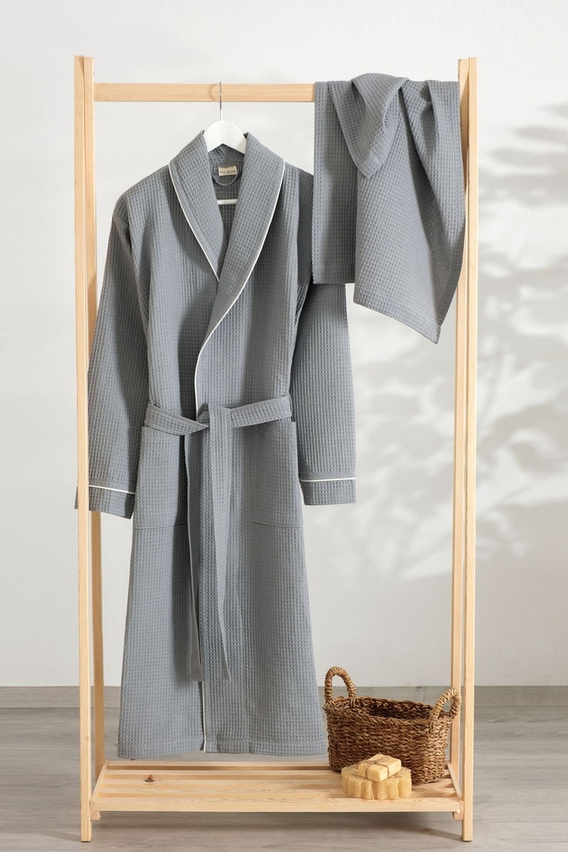 Roupão e toalha - Cinzento
