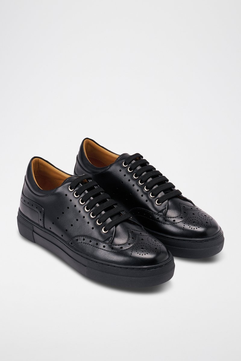 Sapatilhas regular em couro - Preto - Preto