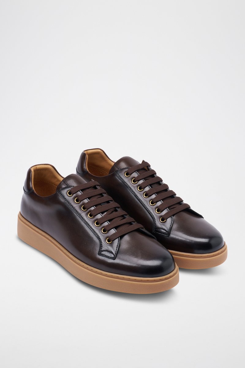 Sapatilhas regular em couro - Castanho-escuro - Castanho-escuro