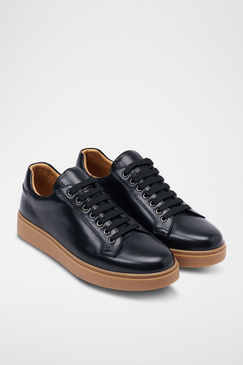 Sapatilhas regular em couro - Preto - Preto