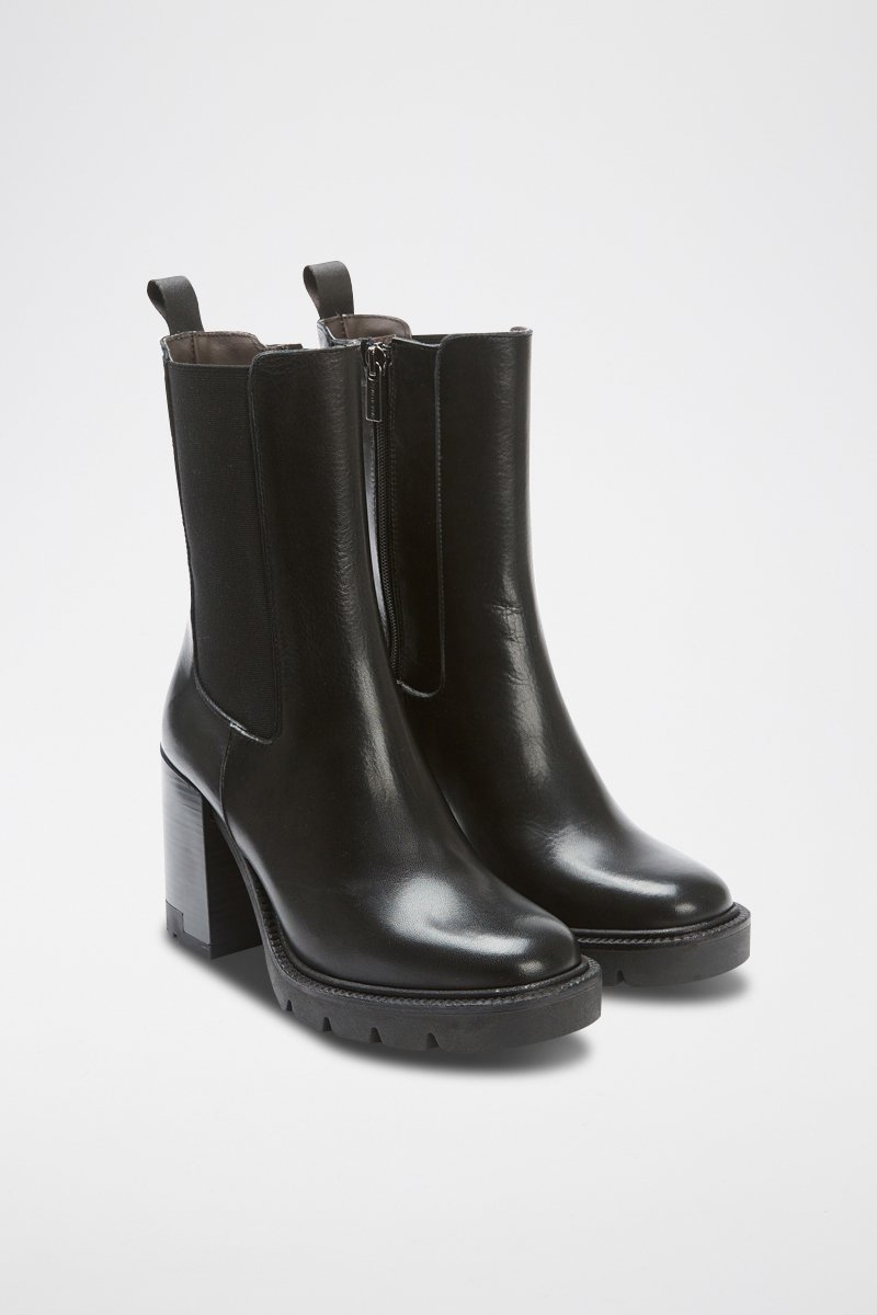 Botins Chelsea em couro.