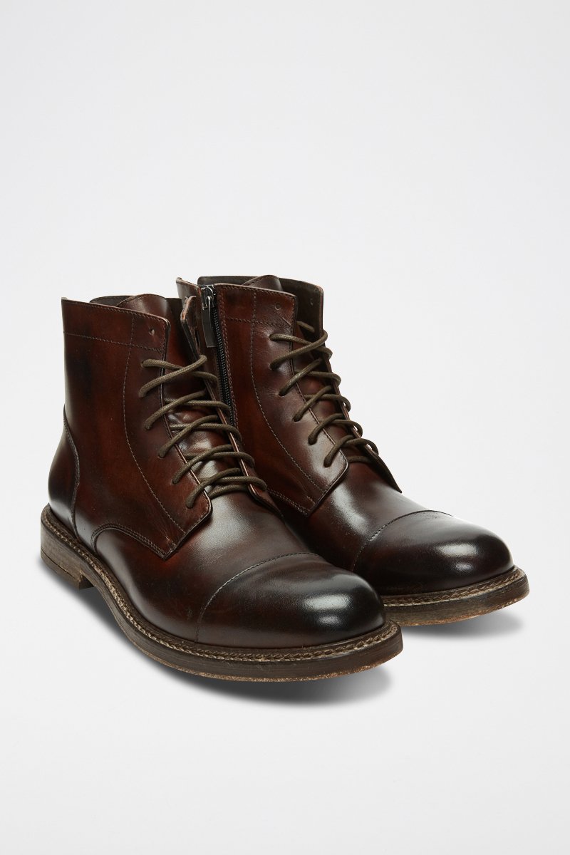 Botins em couro - Castanho-escuro - Castanho