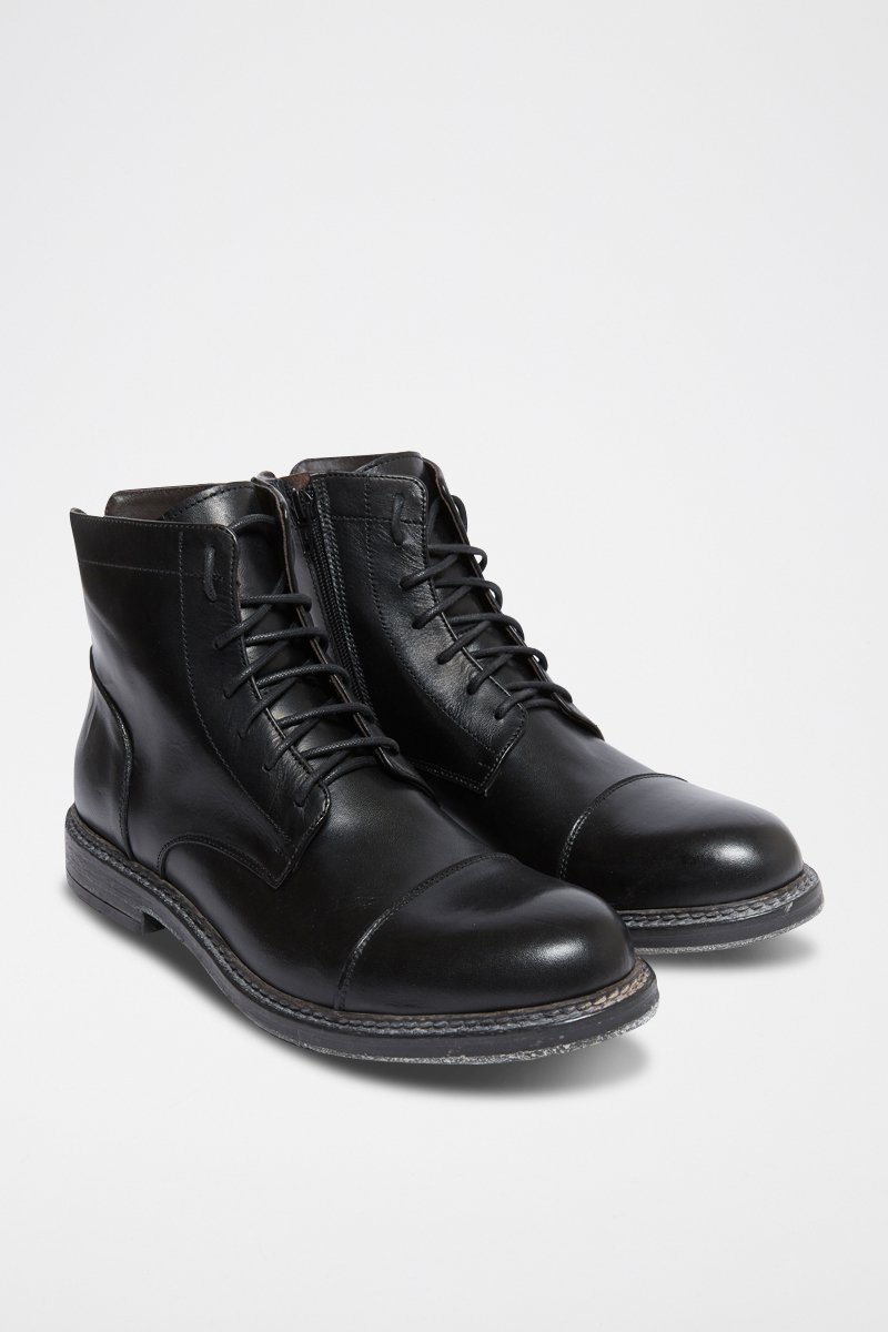 Botins em couro - Preto - Preto