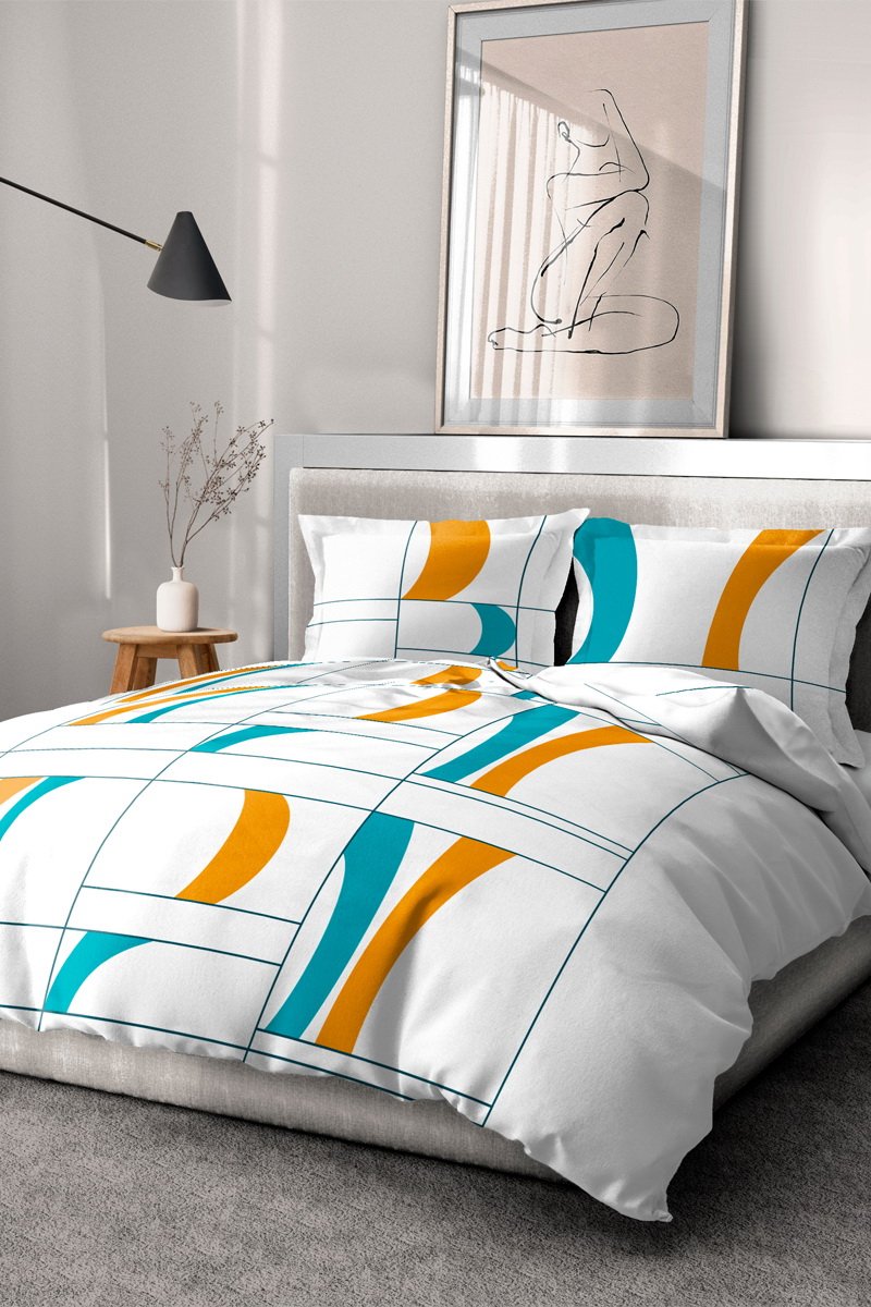 Conjunto de edredão em algodão 57 fios/cm² Atoll - Branco e turquesa