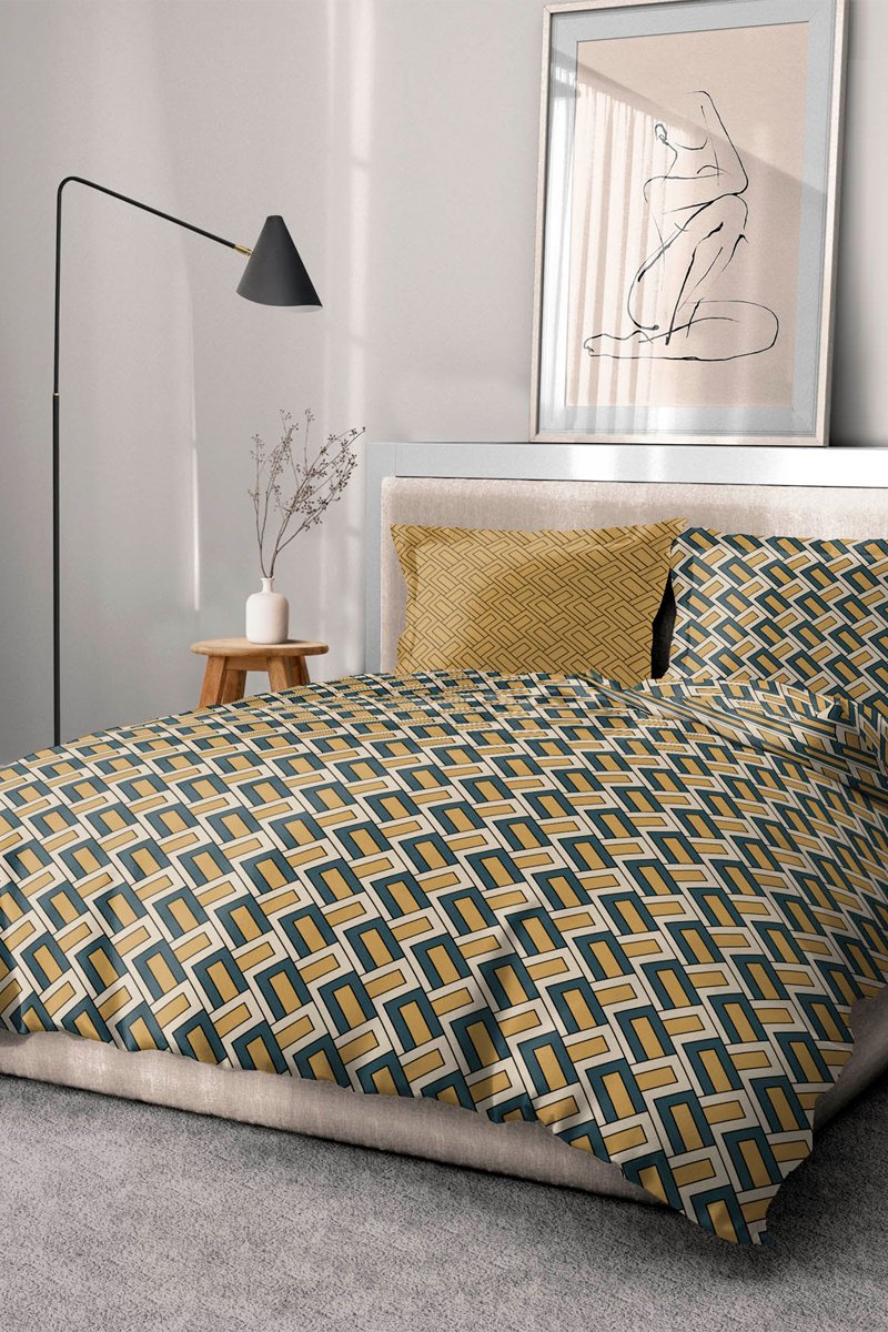 Conjunto de edredão em algodão 57 fios/cm² Mineria - Ocre e azul