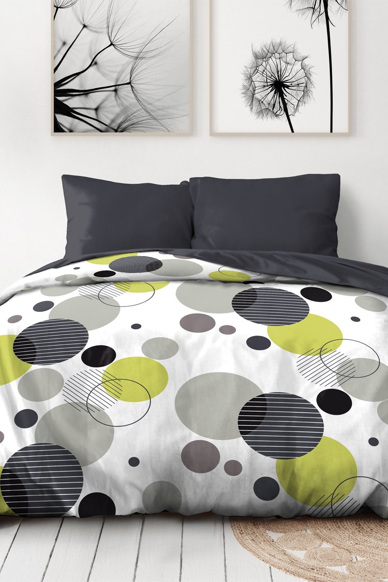 Conjunto de edredão em microfibra Bulles de rêve - Cinzento e verde