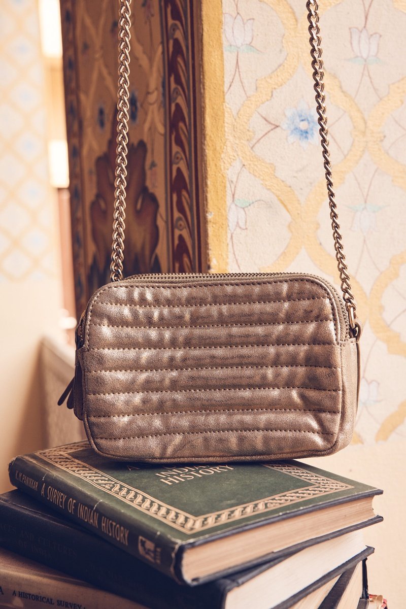 Mala a tiracolo em raspa de couro - Dourado