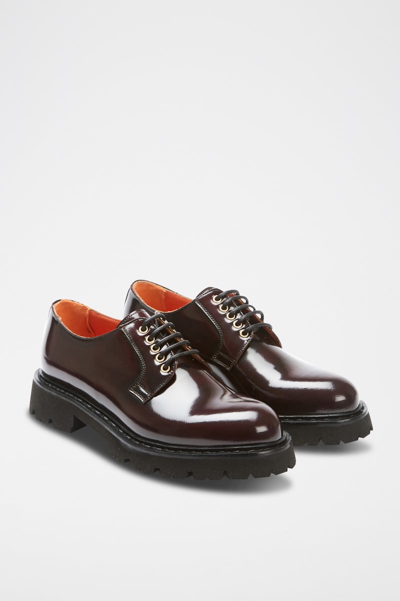 Derbies com plataforma em couro Regular - Bordô