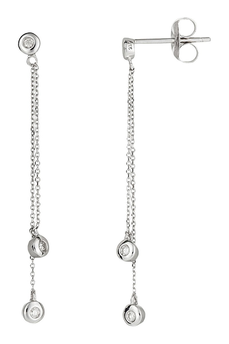 Brincos pendentes de ouro brancocom 3 diamantes.
