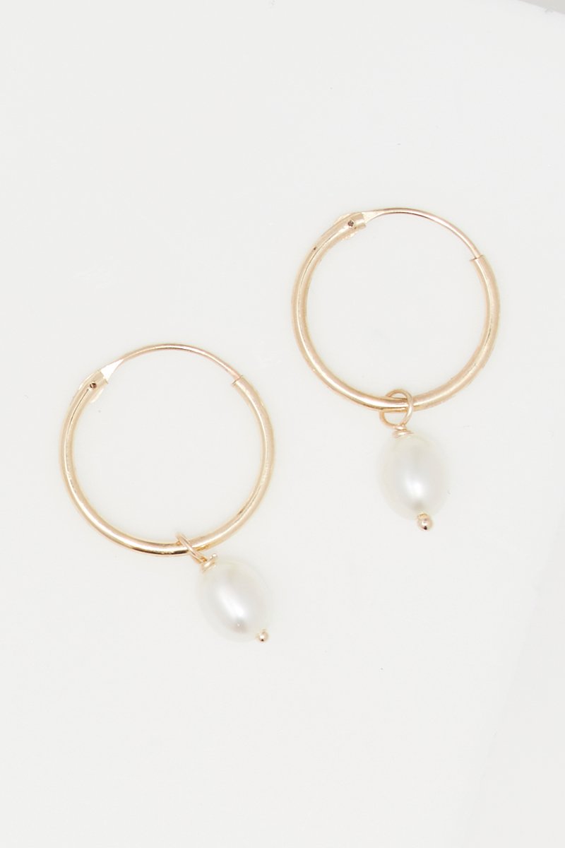 Argolas de ouro amarelo com uma pérola de água doce.