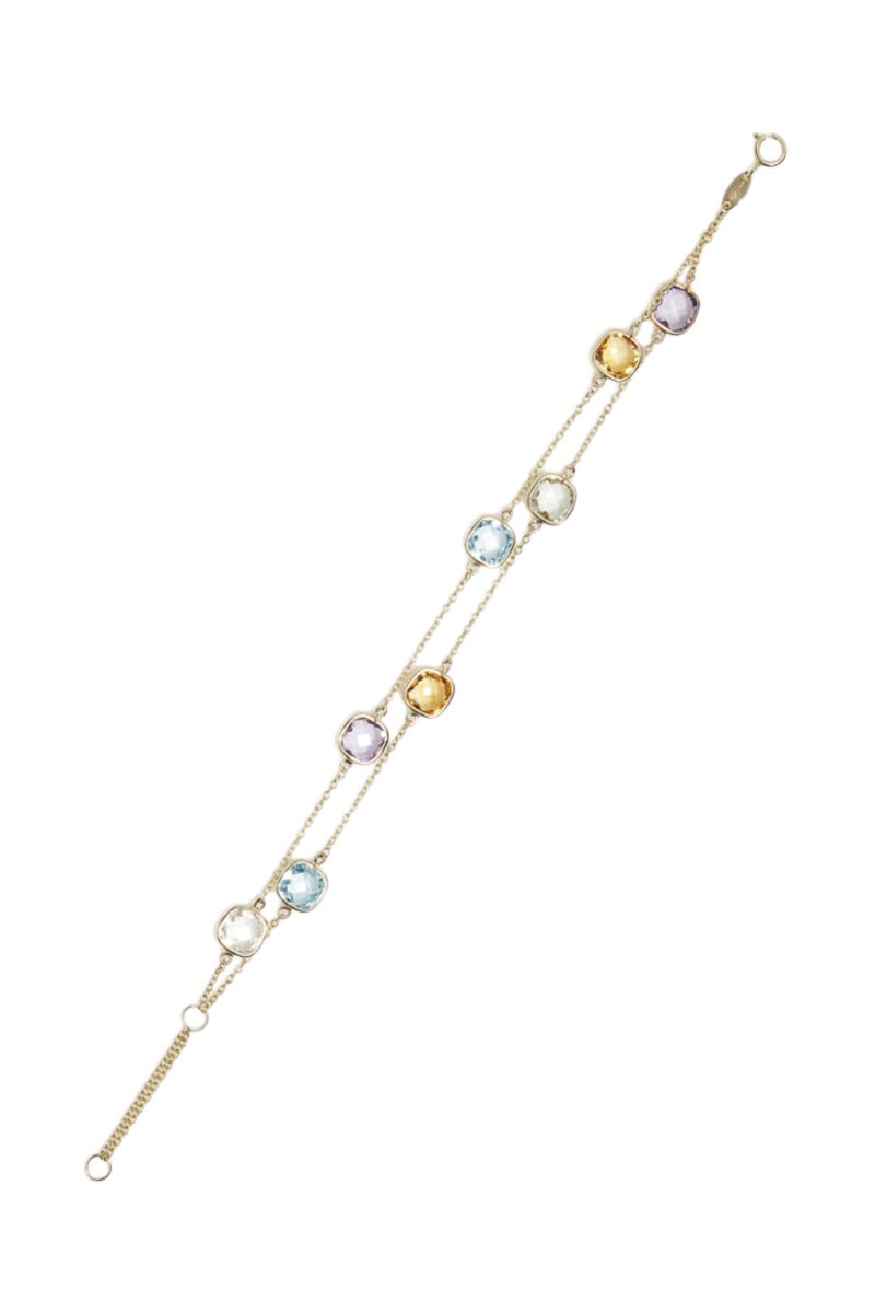 Pulseira de ouro amarelo com 2 topázios, 3 ametistas, 2 citrinos e um quartzo.