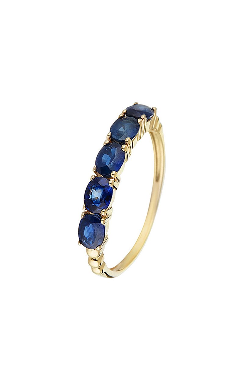 Anel de ouro amarelo com 5 safiras.