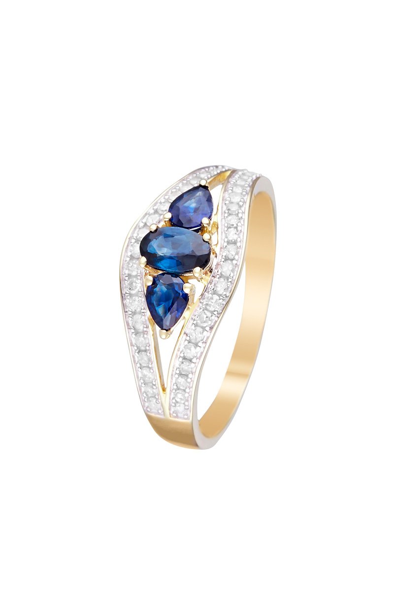 Anel em ouro amarelo incrustado com 3 safiras e 38 diamantes.